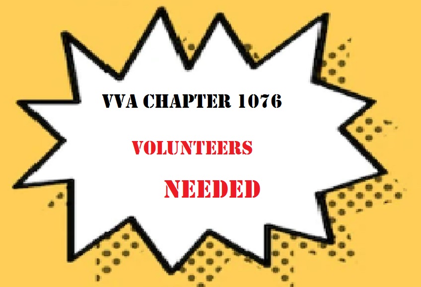 VVA #1076 Volunteer Opportunities Chapter volunteers are needed for a variety of events. Events range from Outreach Booths, Unaccompanied Veteran Services and Community Support Events. Your participation will be appreciated. A complete list of opportunities are available by opening the link below. Thank you !!