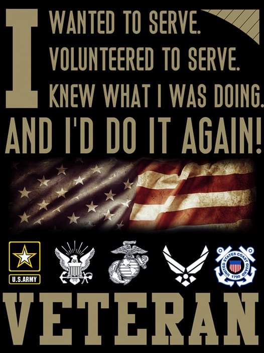 Veterans, If any of you need to reach out to talk, don’t hesitate to call the Veterans Crisis Line at 1-800-273-8265, press 1.