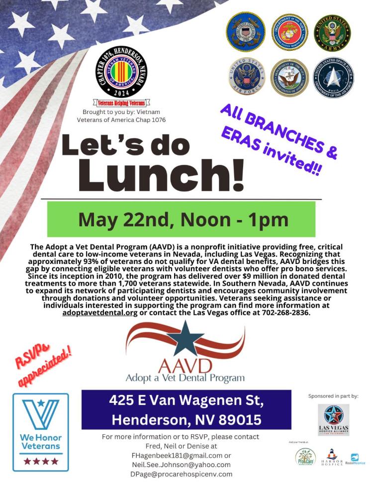 29 MAY 25 “ Let’s do Lunch” AAVD Dental Program