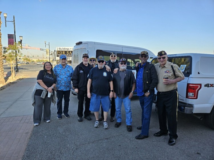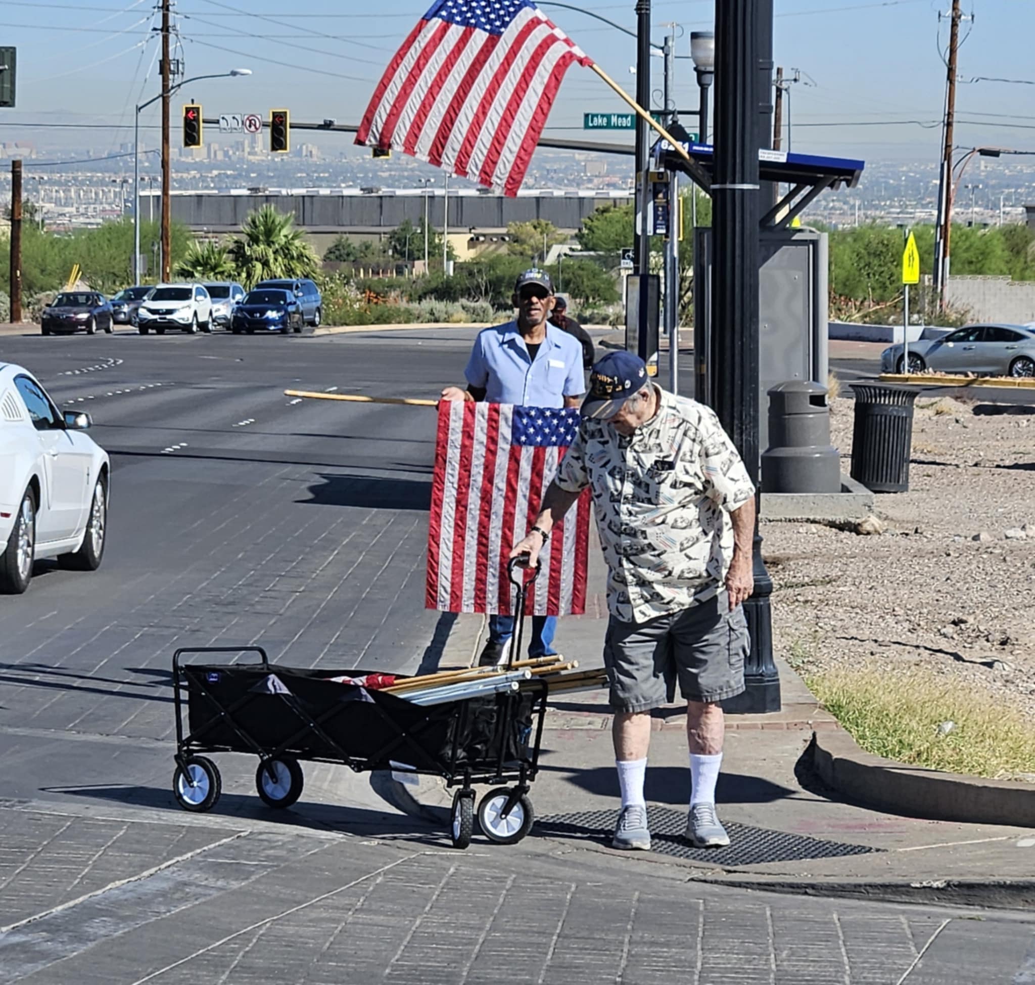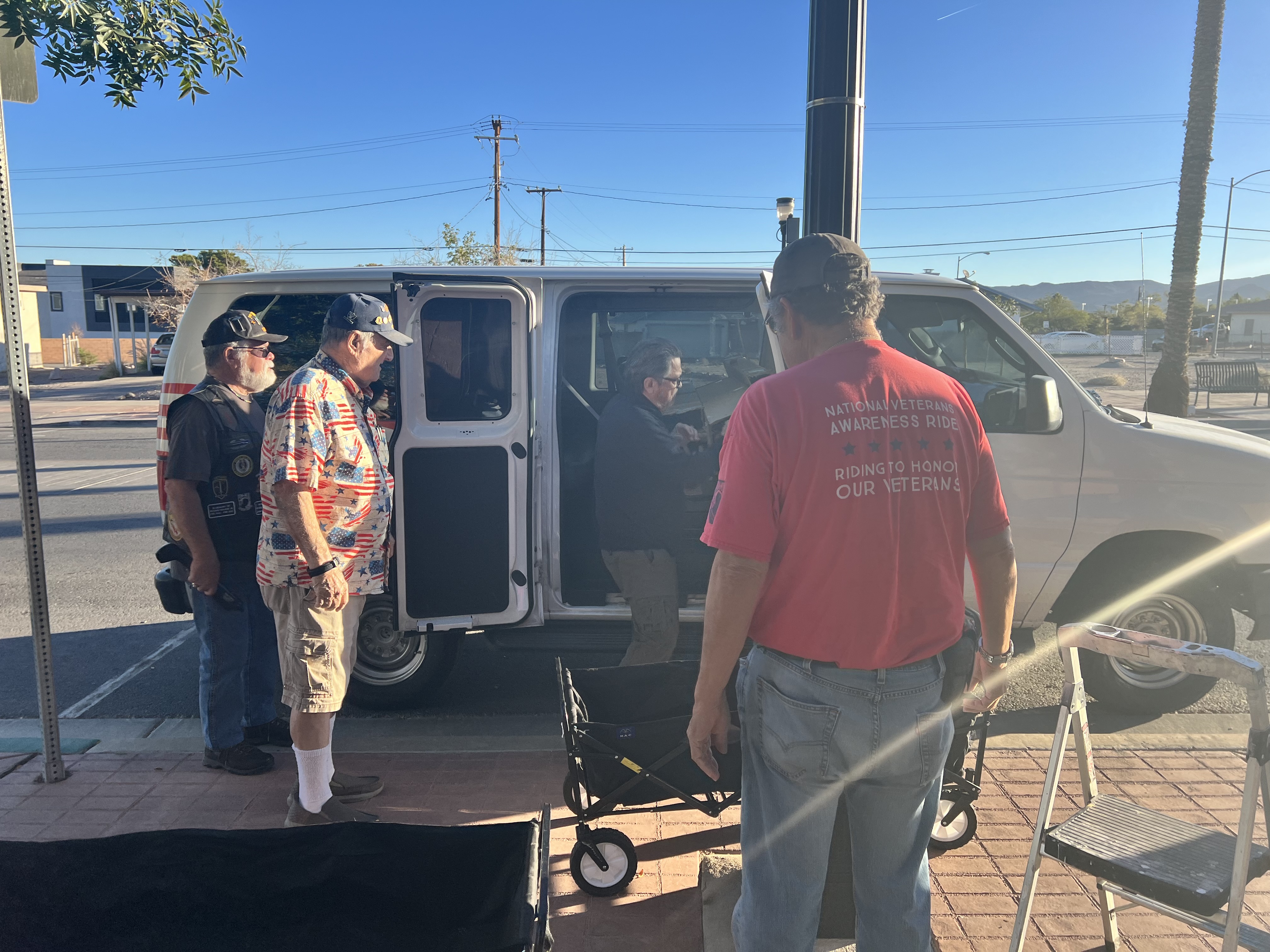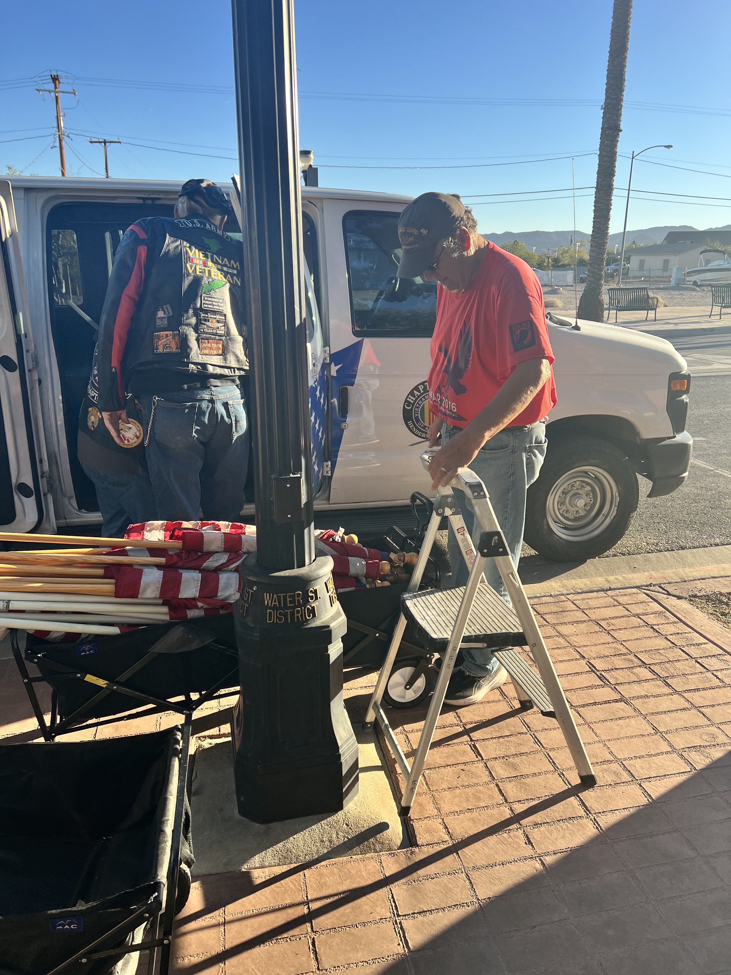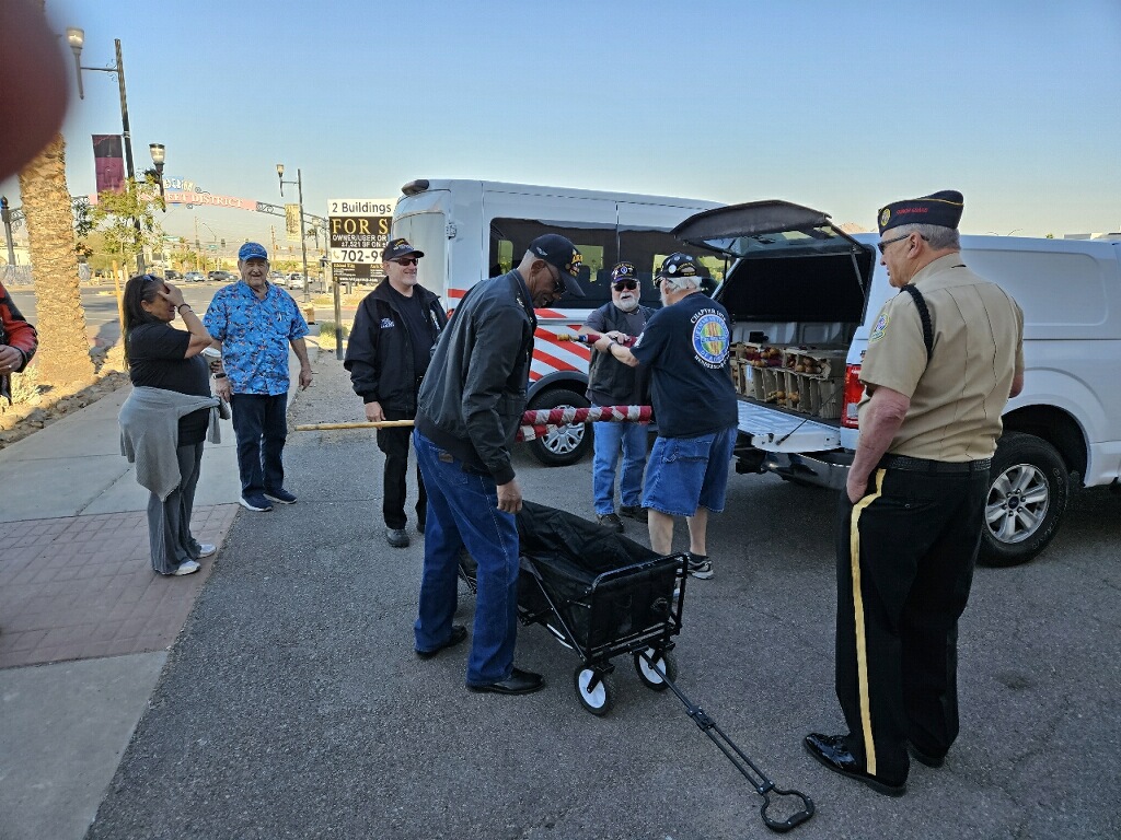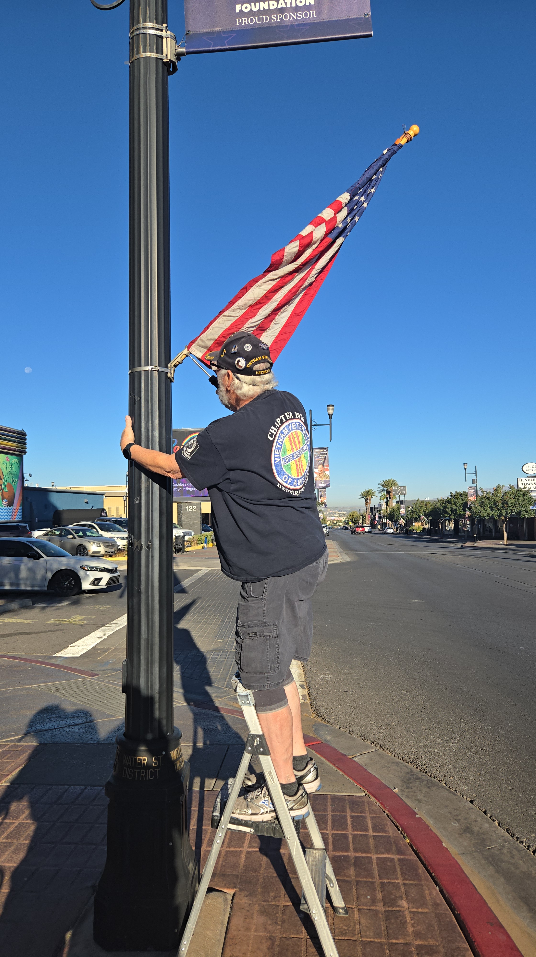 Getting ready for a busy week ahead with Marine Corps 250th Birthday and Veterans Day, VVA 1076 with DAV was putting up US Flags on Water Street at 0700 this morning. You can support many events like the VetFest– 8 NOV from 0900 to 1500 PM at Summerlin, The Downtown LV Veterans Day Parade 11 NOV at 1000, and Vet EXPO at The M Resort at 1000 to 1400. 15 NOV 1000 to 1330 The VA Medical Center is hosting a Barbecue and Car Show. Many businesses are offering free lunch or a dinner to Veterans.