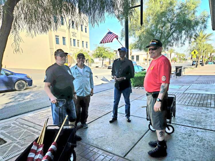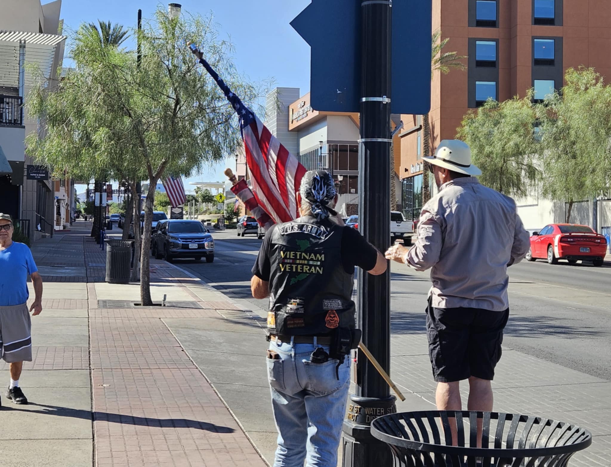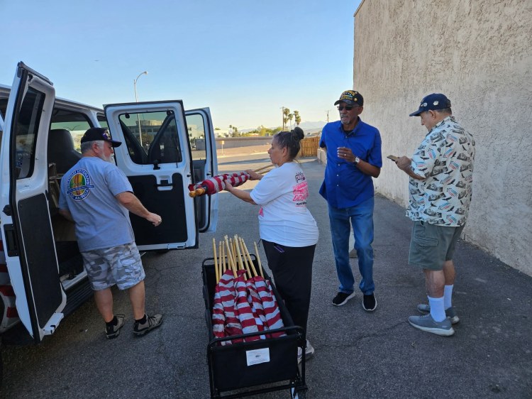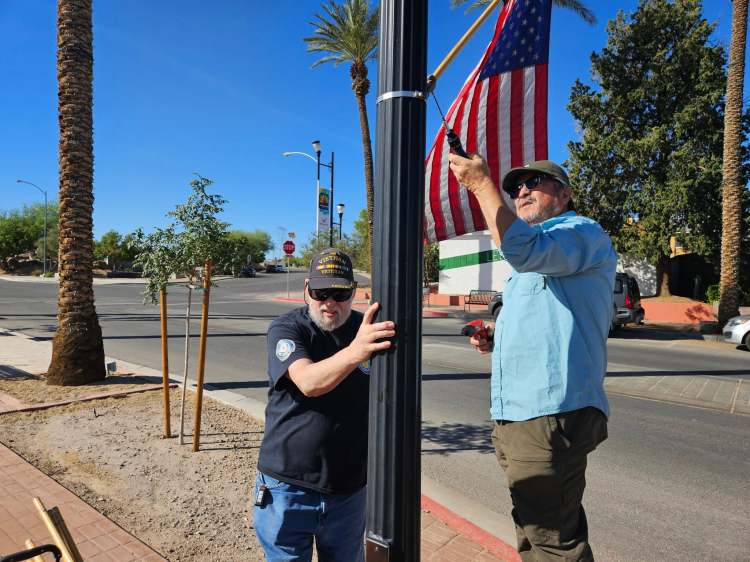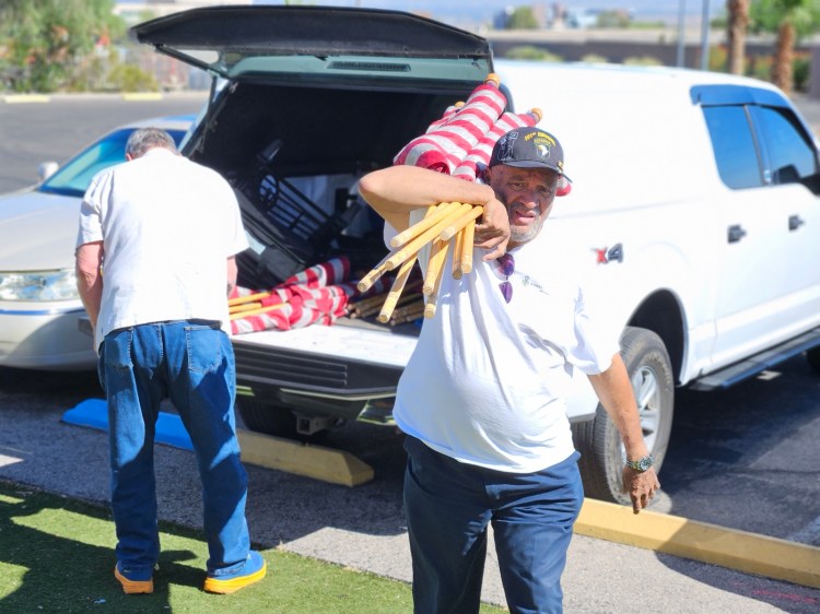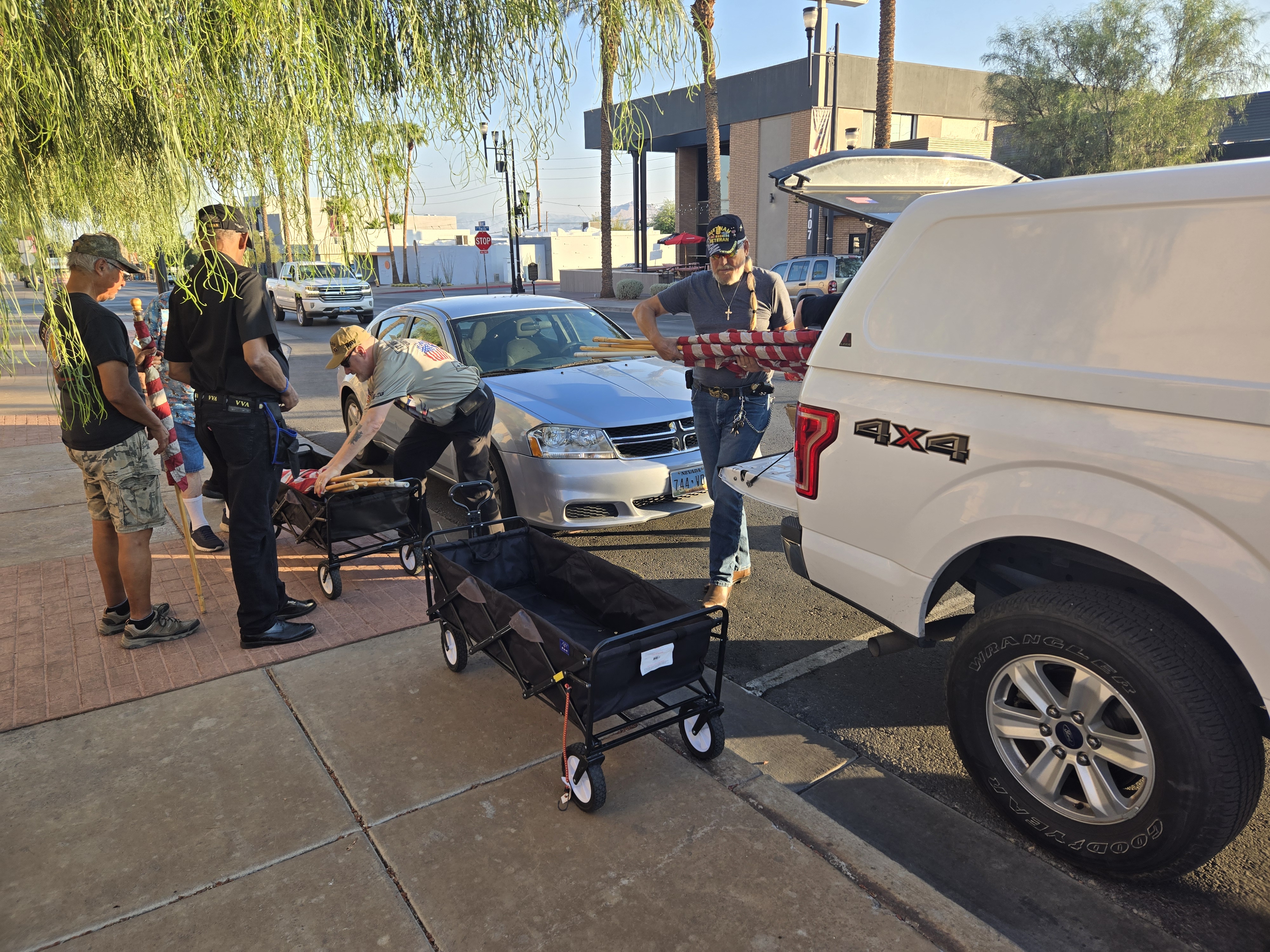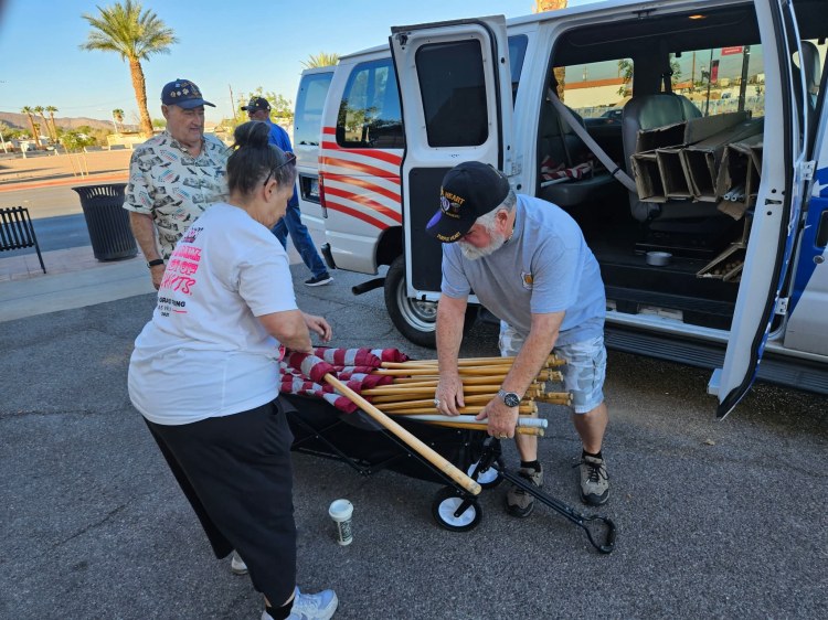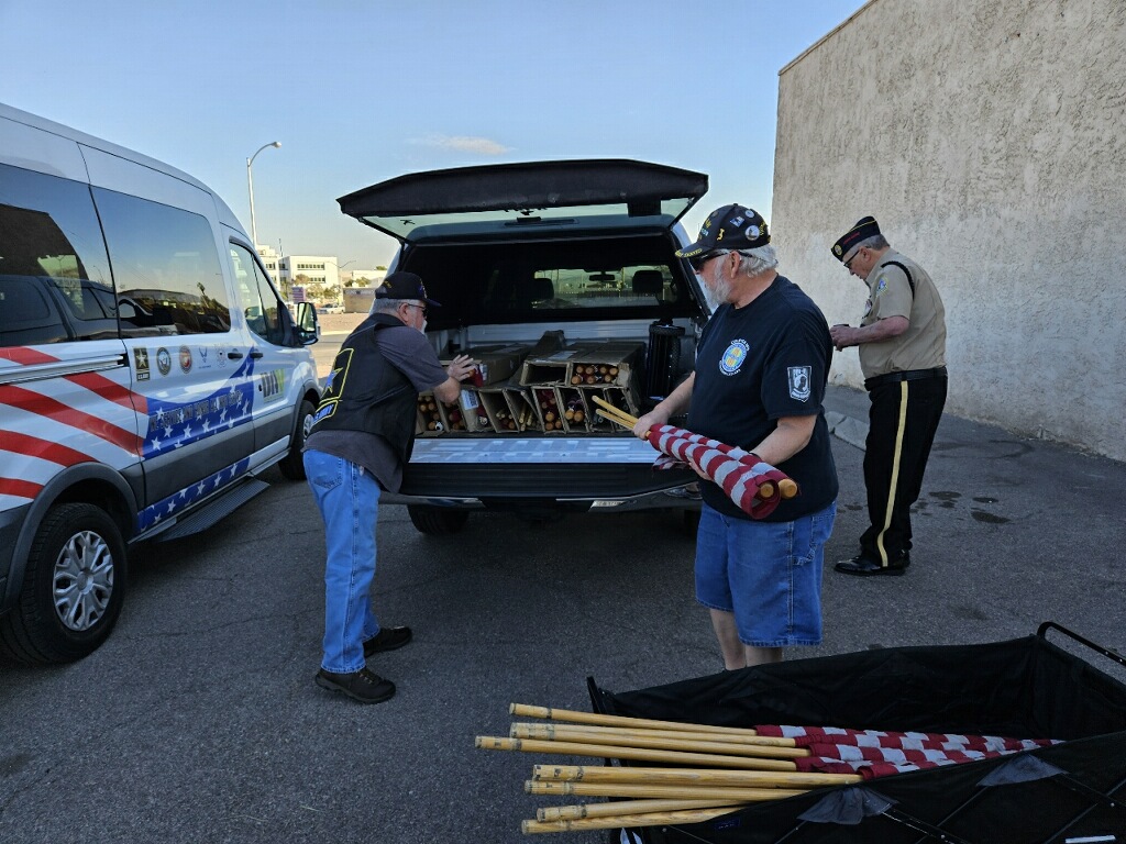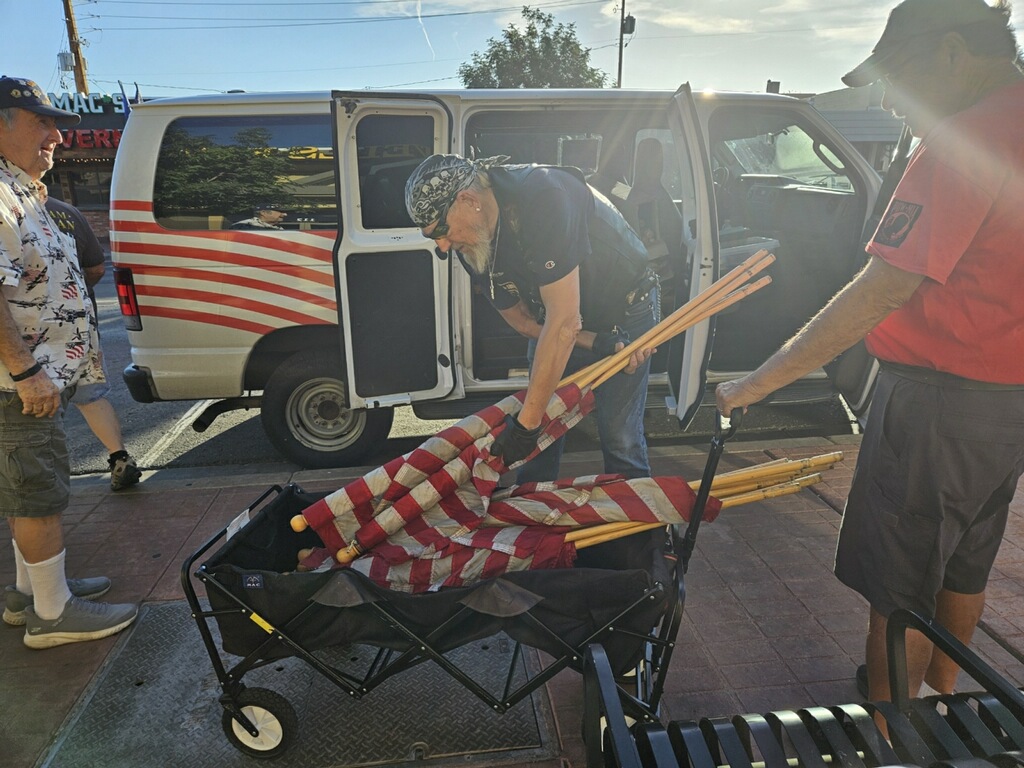 Getting ready for a busy week ahead with Marine Corps 250th Birthday and Veterans Day, VVA 1076 with DAV was putting up US Flags on Water Street at 0700 this morning. You can support many events like the VetFest– 8 NOV from 0900 to 1500 PM at Summerlin, The Downtown LV Veterans Day Parade 11 NOV at 1000, and Vet EXPO at The M Resort at 1000 to 1400. 15 NOV 1000 to 1330 The VA Medical Center is hosting a Barbecue and Car Show. Many businesses are offering free lunch or a dinner to Veterans.