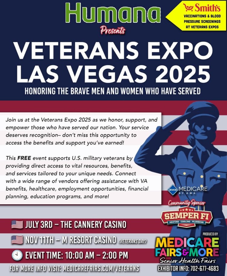 The Las Vegas Veterans Expo 2025 by Humana at the M Resort Casino was free community event for veterans, active-duty service members who could explore healthcare options, connect with veteran-focused organizations who support lifelong wellness.