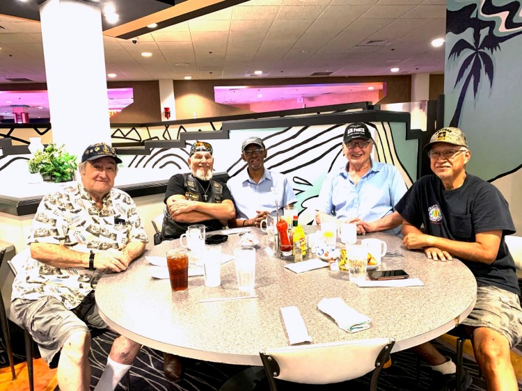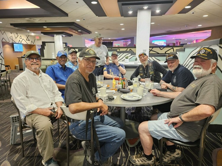 The VVA 1076 Flag crew assembled to take down the US flags on Water St. after 9/11 day. Afterwards it was breakfast at the Pass Casino. Next scheduled Flags up will be for National Gold Star Mothers Recognition Day on September 26, consider helping out the flag crew, details sent out before. Well Done !