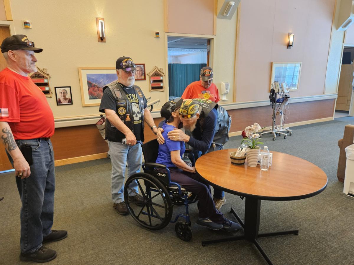 One of the VVA 1076 family members, Ann is recovering at the Boulder City Veterans Home. A number of 1076 Members stopped in for a visit. She is doing great, then the biggest smile when she saw her friends.