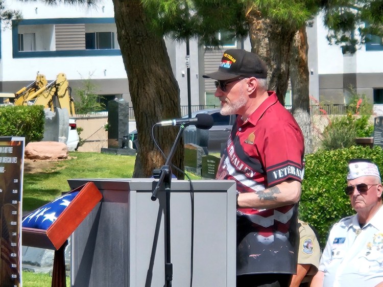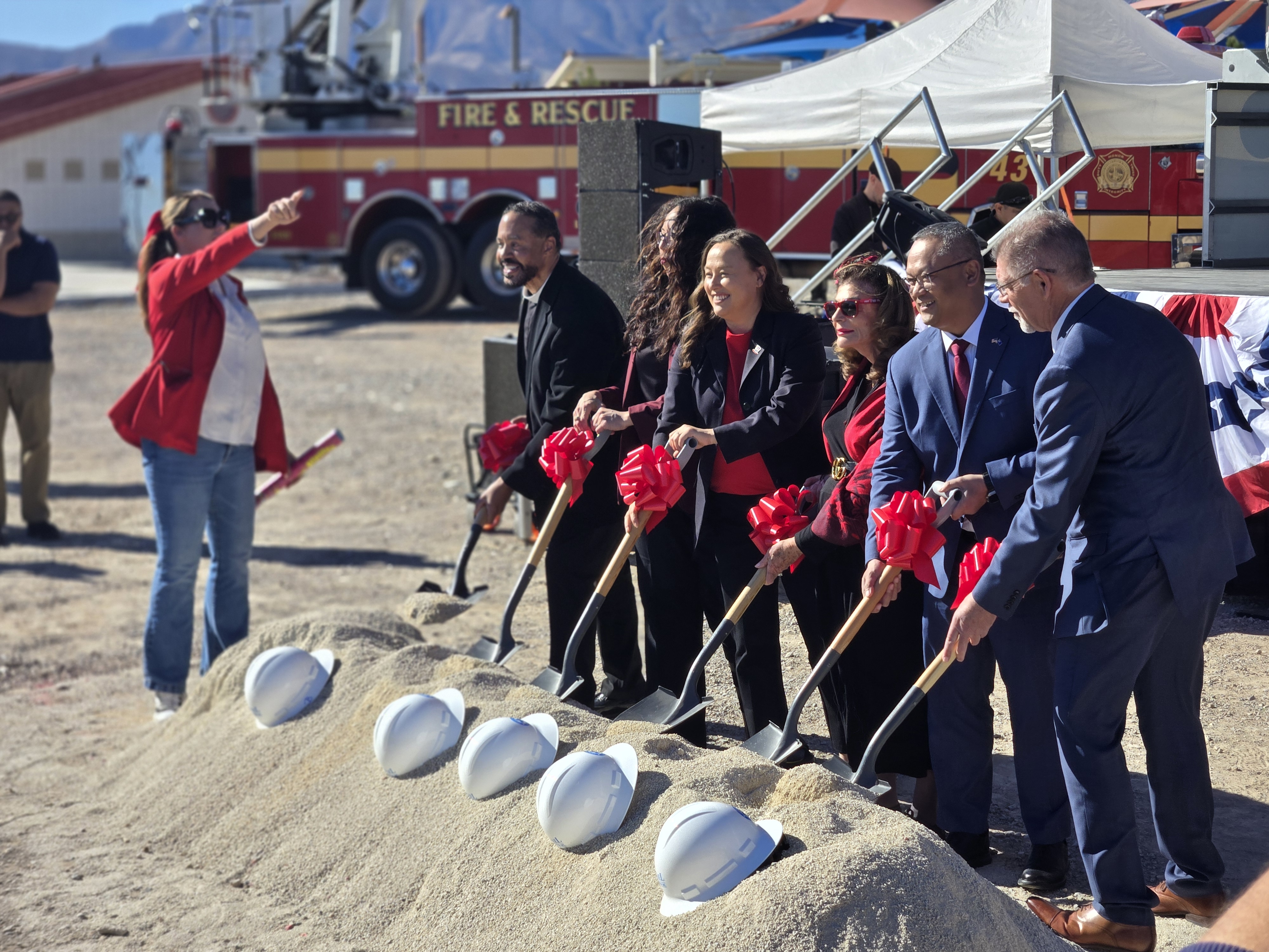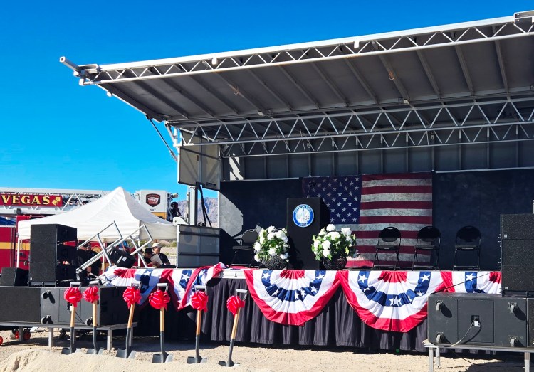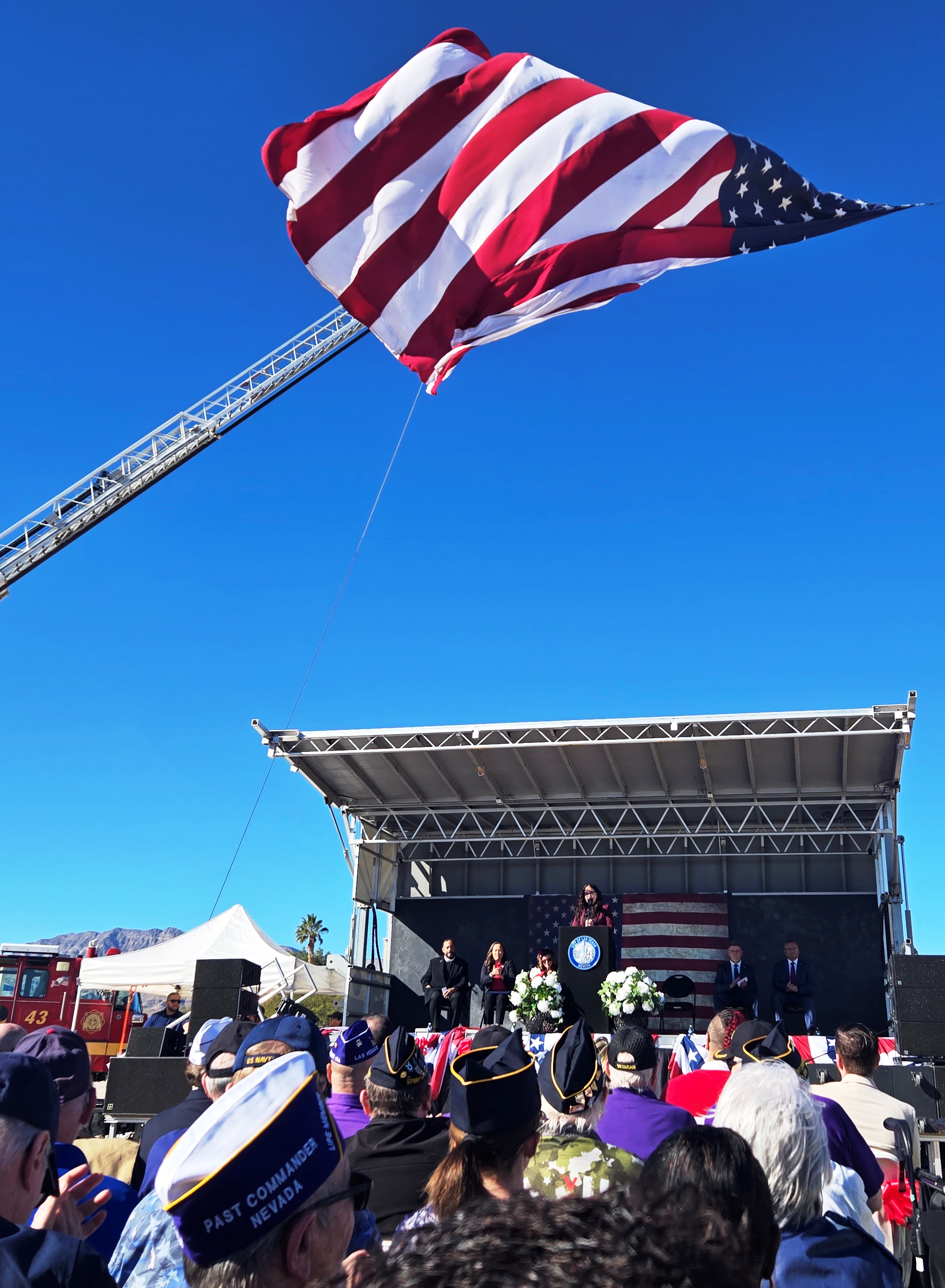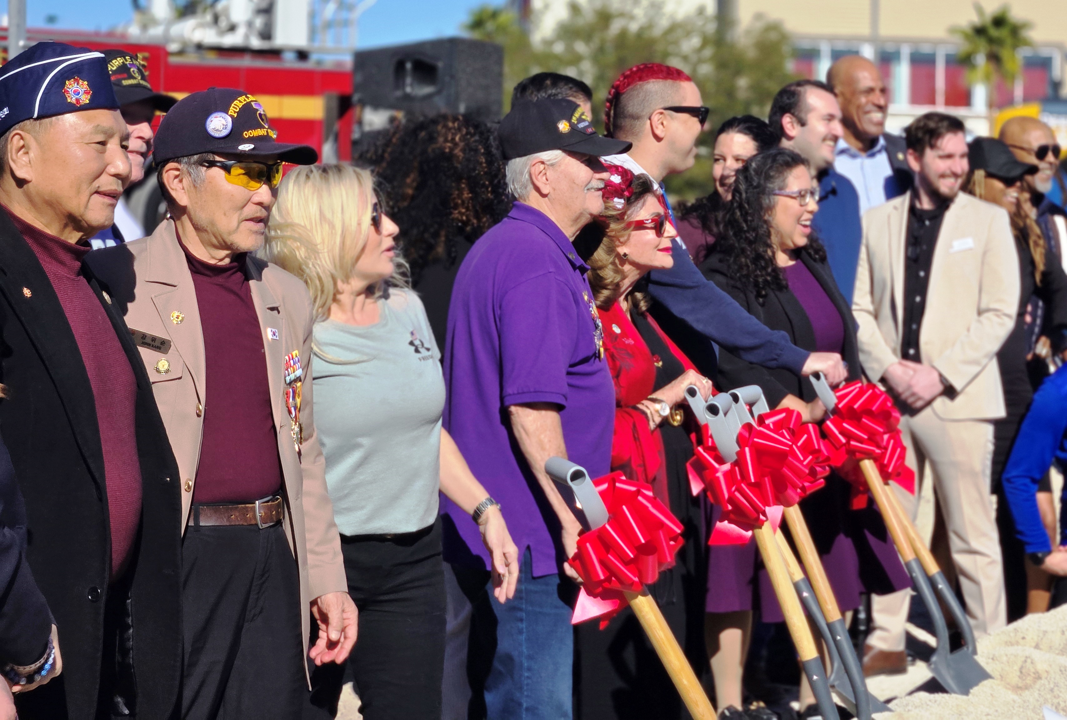 A windy groundbreaking ceremony was held at 1100 for the new home of the Nevada State Veterans Memorial relocated from outside the Grant Sawyer state building to The Thunderbird Family Sports Complex, 6105 N Durango Dr. Las Vegas. A funding cost of $7.69 million was shared by the state of Nevada, City of Las Vegas and Mayor’s Fund for Las Vegas LIFE.