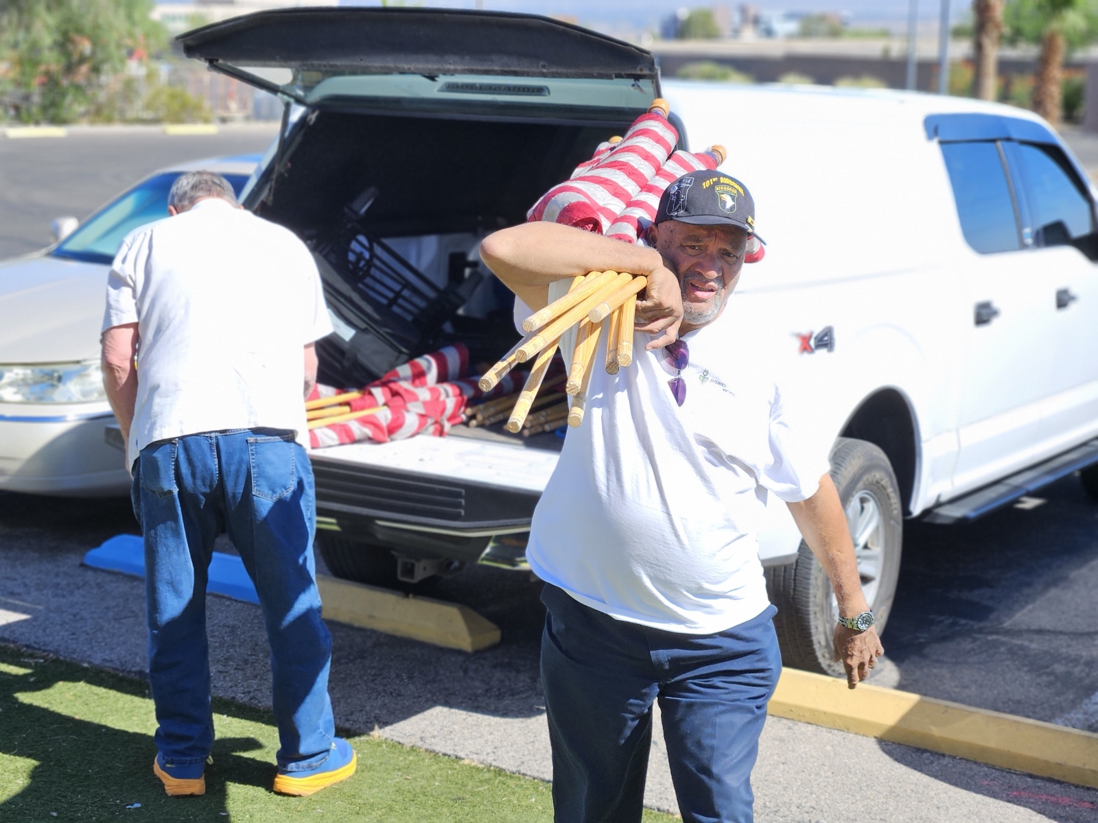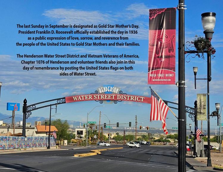 A crew of 1076 volunteers removed US flags flown in honor of Gold Star Mothers and Family day. The crew started at the south end of Water St to Lake Mead Blvd. to remove the flags. A breakfast followed at the Pass Casino. Thanks to all who helped- Well Done !