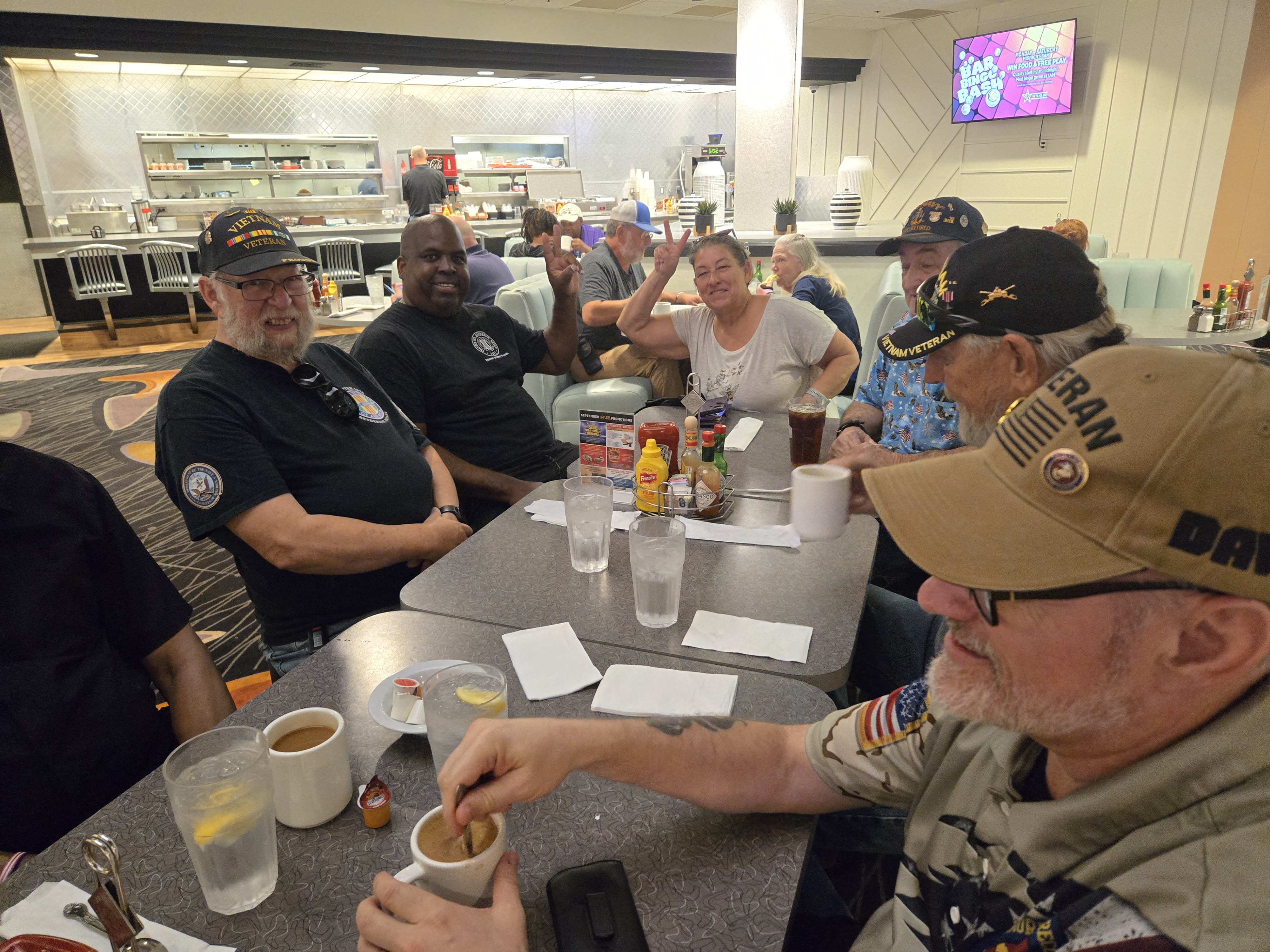 The gang retreated to Pass Casino for breakfast and camaraderie. Flags are scheduled to be removed Tuesday morning. Well Done !! VVA 1076
