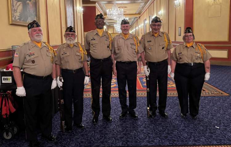 DAV Chapter 12 Blackmountain Honor Guard / Color Guard standing down after opening ceremonies for 2025 DAV National Convention at the Paris Hotel. The Honor Guard Commander is Neil C. Johnson who is the President of Vietnam Veterans of America, Chapter 1076, Henderson, NV.