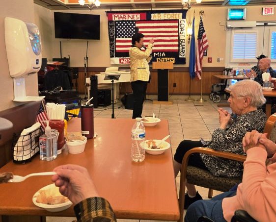 She explained some folks have the regular weekly job, others come during special events and others will drop it in just spent time reading a book to a veteran. Her contact email is gonzalezm@veterans.nv.gov All are welcome to help at the Veterans home. A free lunch was provided at the lecture and the 2026 schedule is being planned. Please join us in the third Thursday of the month at noon.