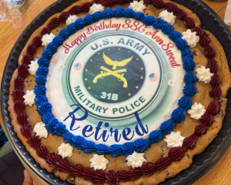 Ann Sweat received a surprise birthday celebration today from her 1076 Comrades. A big “Thanks” to Larry Eastman for the Army MP cookie, the Army Stuff Bear, and Necklace. Also many “Thanks” to Jan Kopacz for the ice cream for Ann. The Honor Guard and the VVA Flag crew will need to practice singing “Happy Birthday” because the performance cleared the smoking patio out once singing started. Happy Birthday Ann from your Brothers and Sisters at VVA 1076.