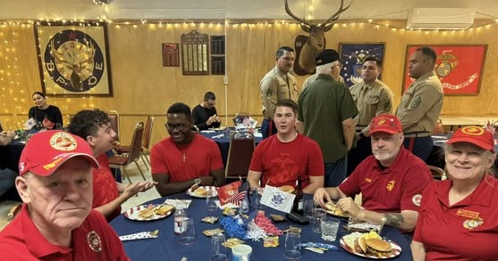 Veteran Marines sharing lunch with Future Marines Semper Fi