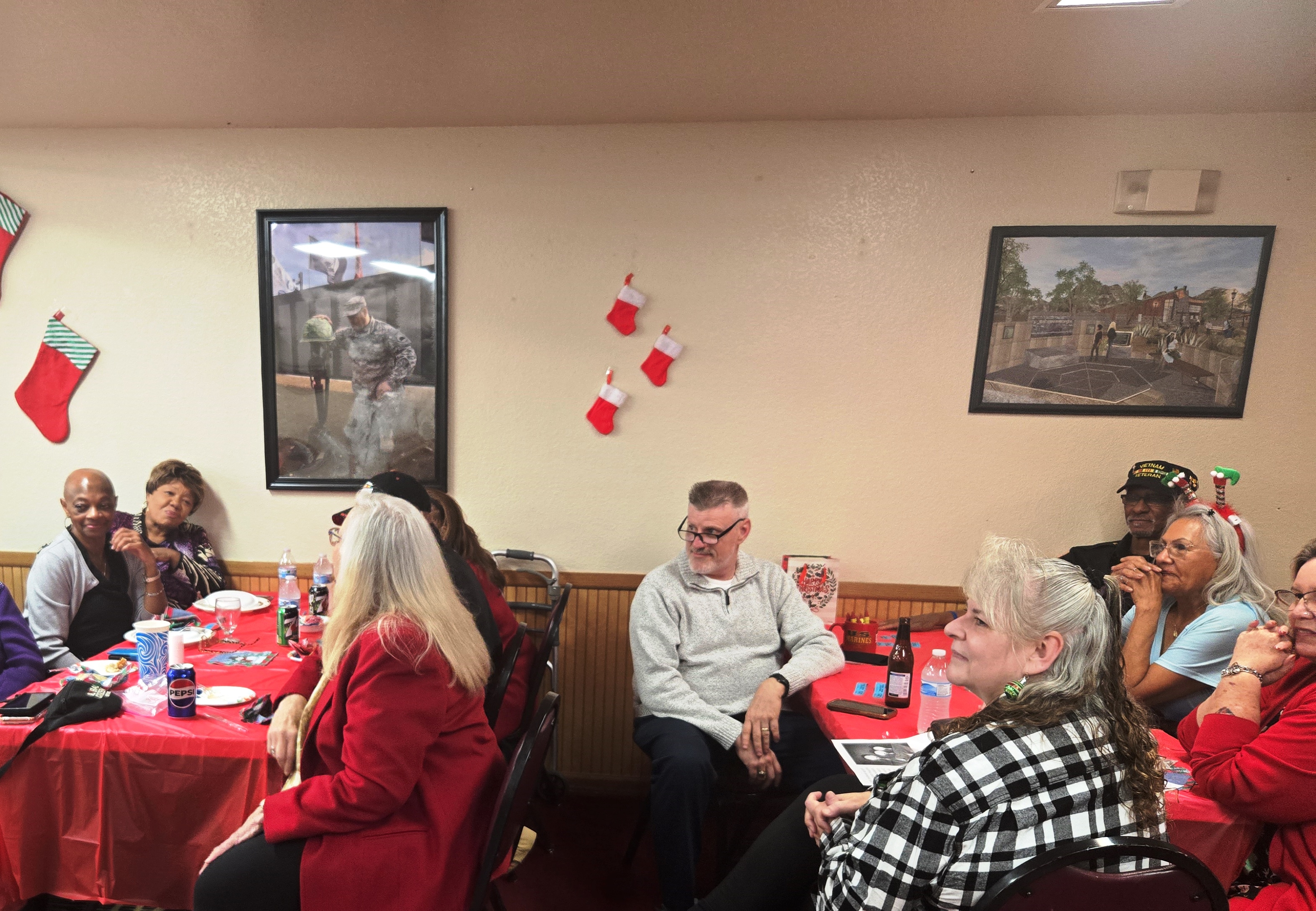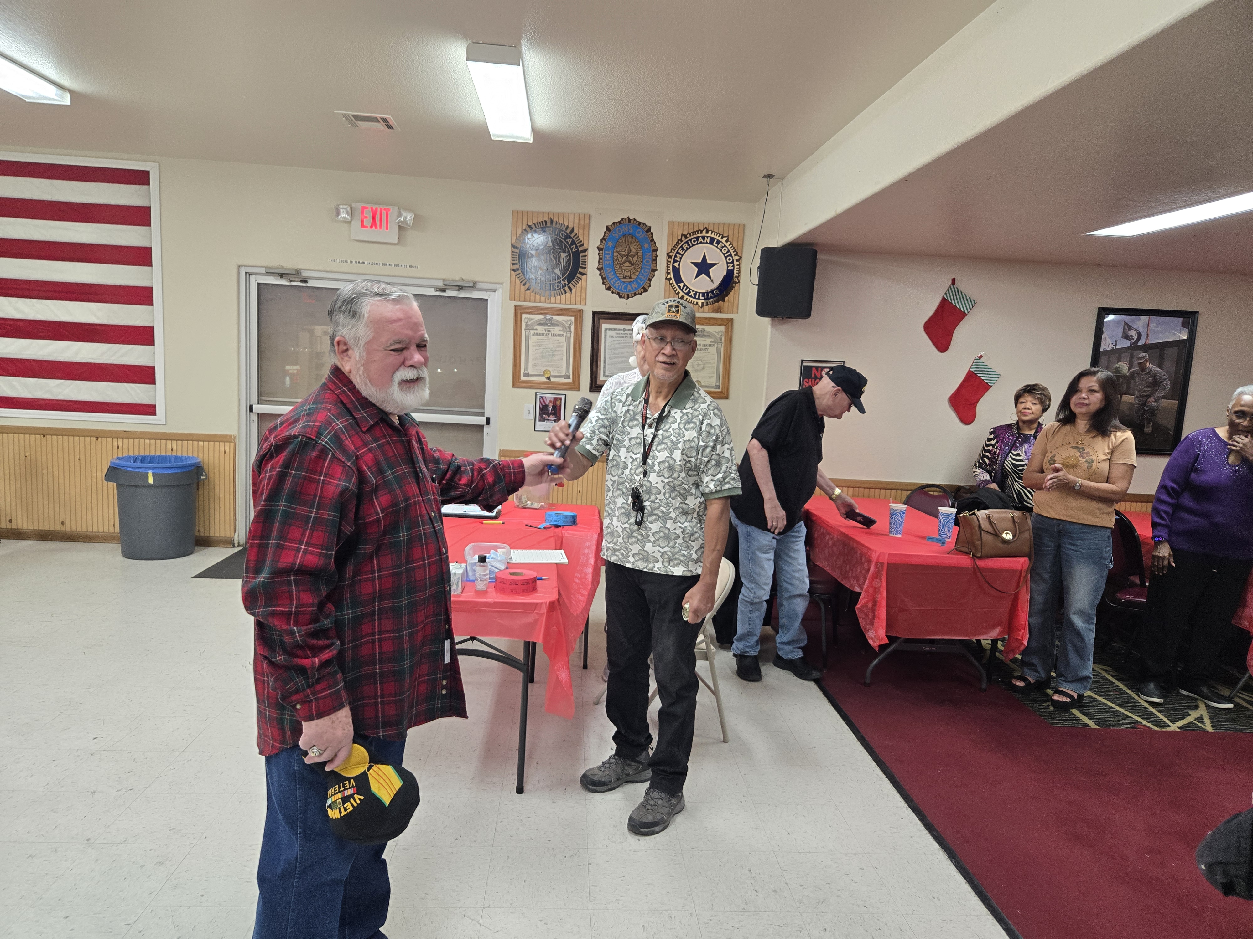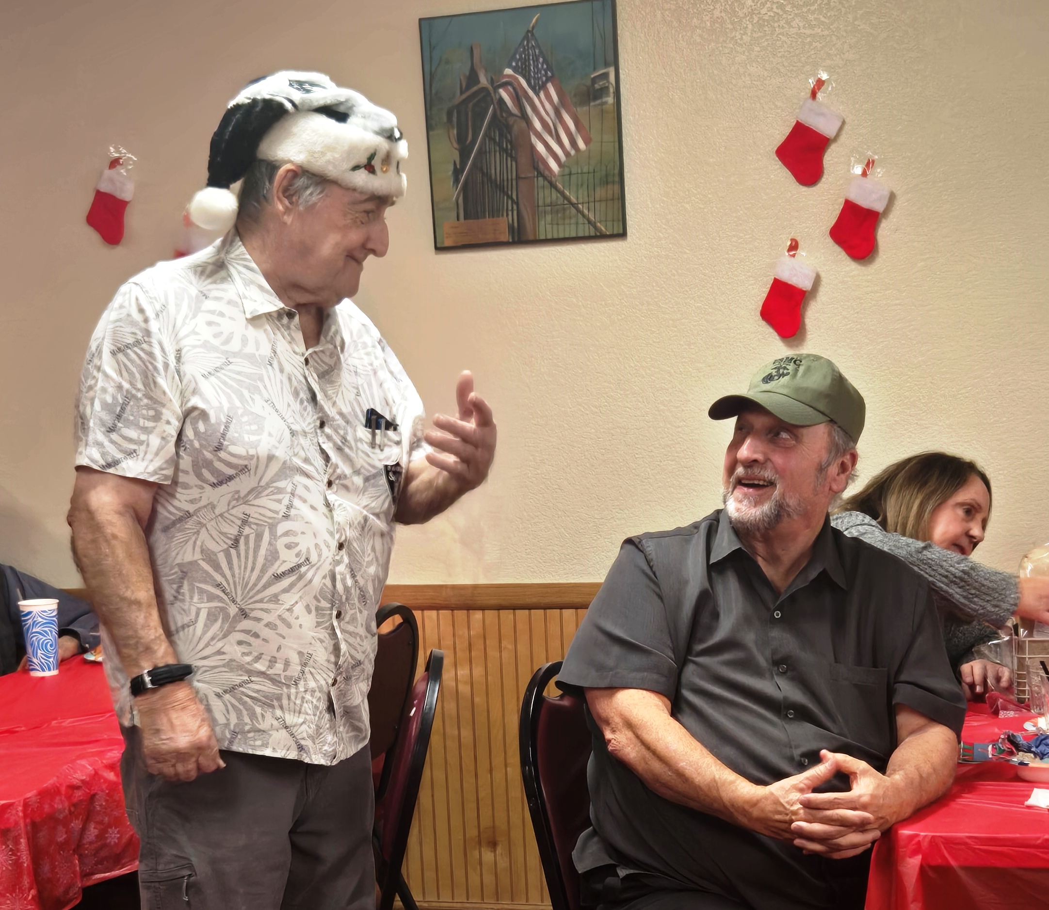 The annual 1076 Christmas Party was a great success, thanks to Fred and the team of volunteers that secured items for the raffle, prepared the food and decorated the American Legion Hall. The party started with Neil Johnson leading the group in the Pledge of Allegiance with a reminder of the POW/MIA Table followed by a short blessing. There were plenty of dinner items to choose from and a table of desserts. The party was time for camaraderie, jokes and a few war stories. A fund-raising raffle of donated items was a highlight with many items to bid on. The Christmas party was a great way to celebrate 2025 and also the achievements of Chapter 1076.