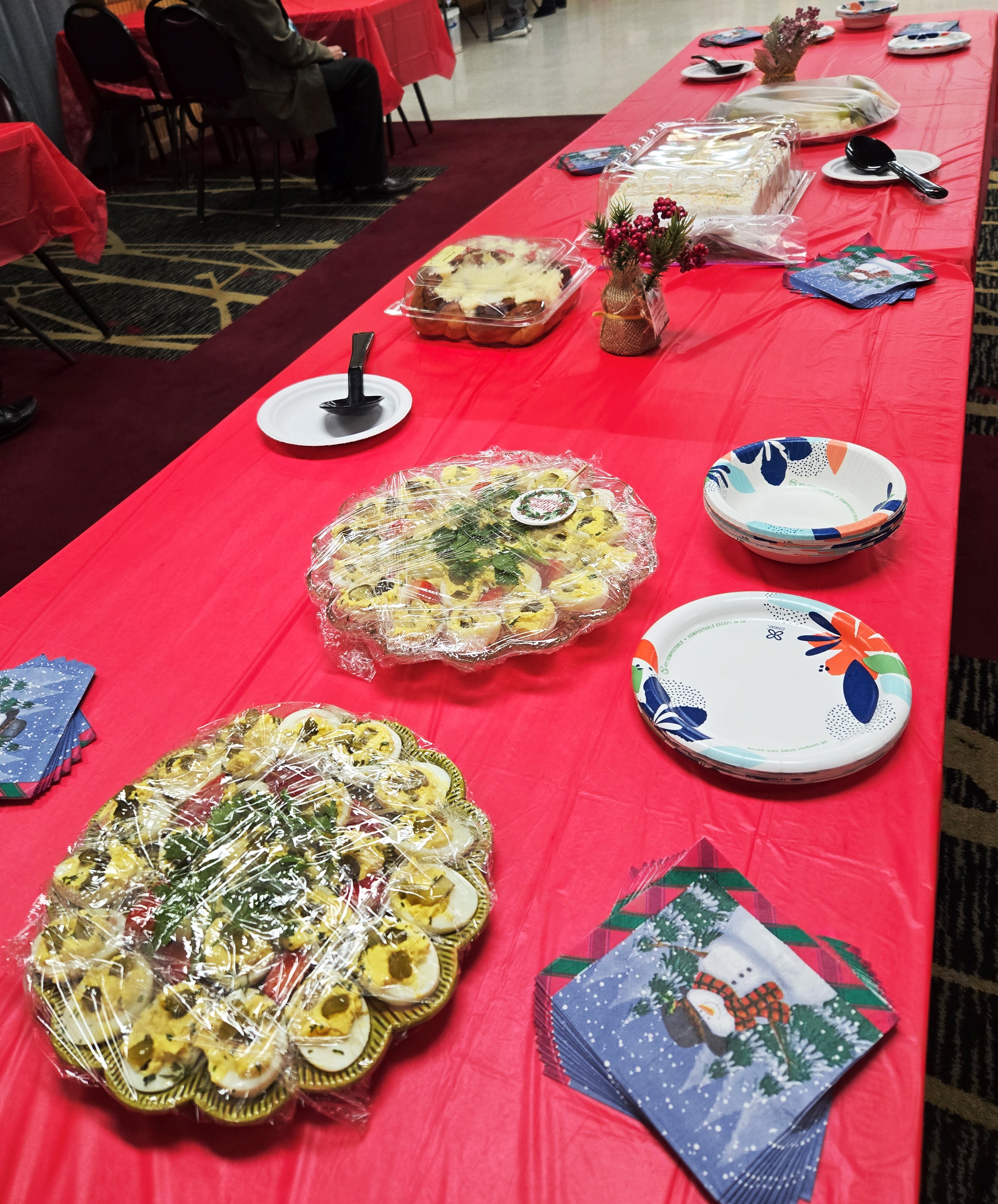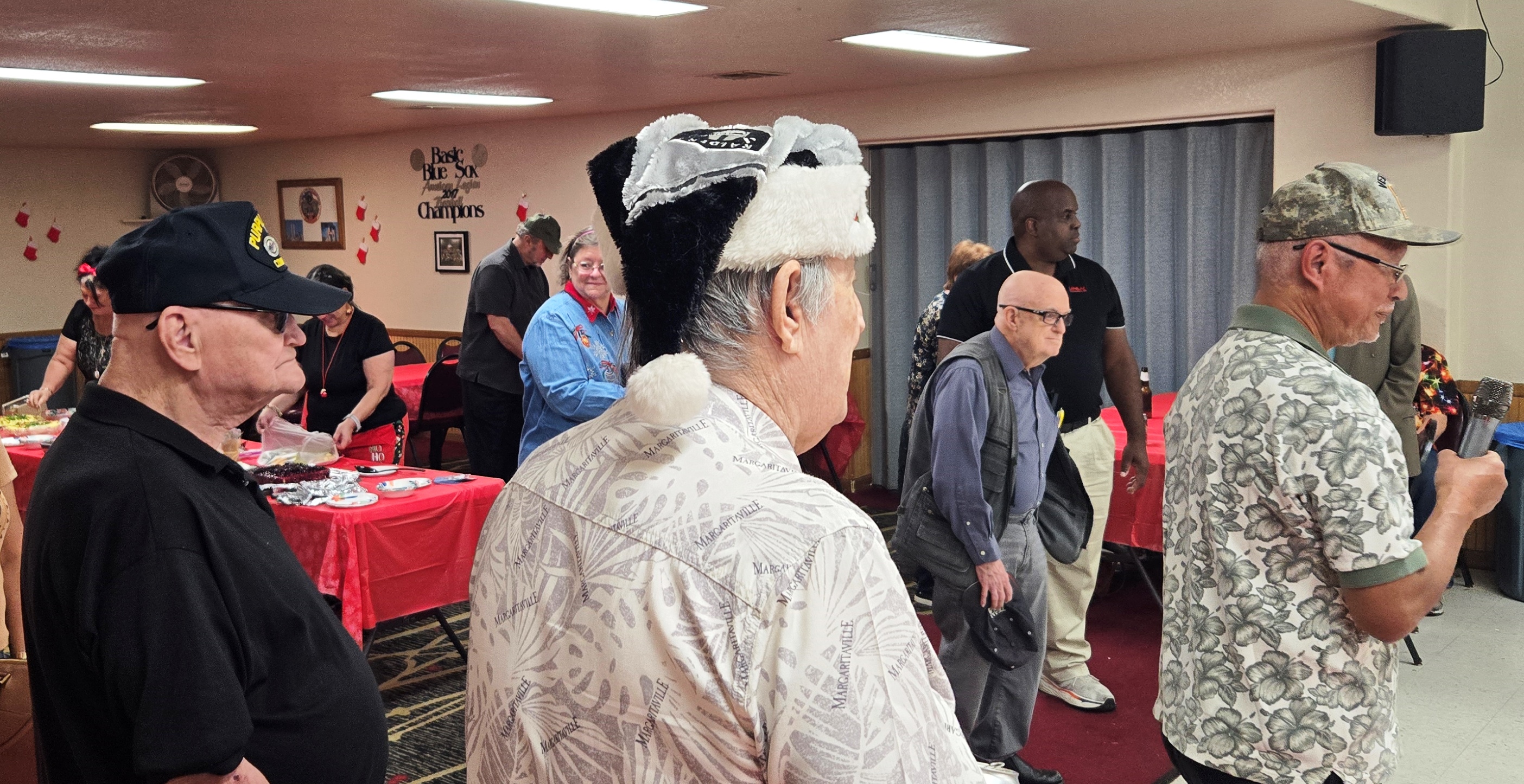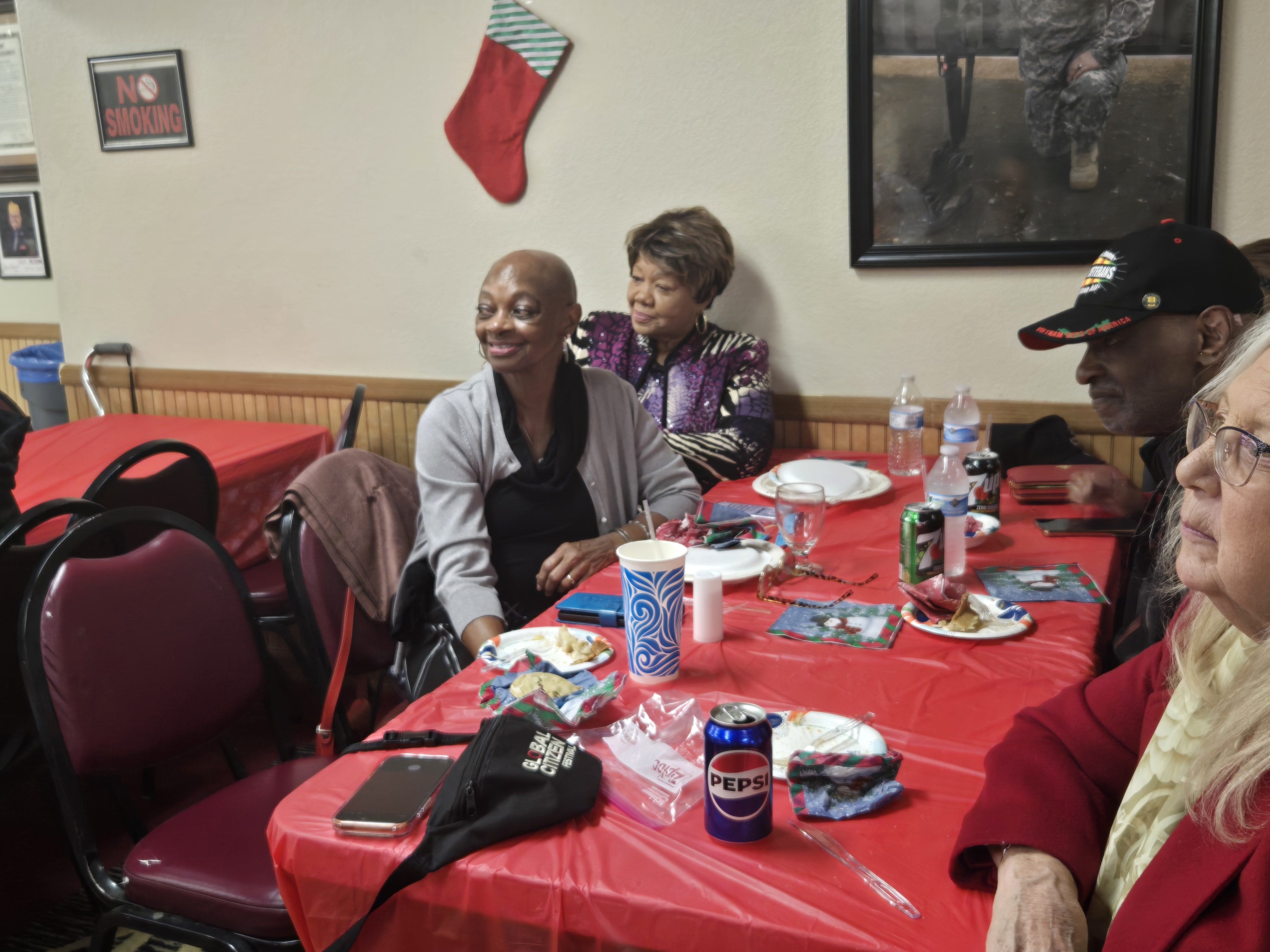 The annual 1076 Christmas Party was a great success, thanks to Fred and the team of volunteers that secured items for the raffle, prepared the food and decorated the American Legion Hall. The party started with Neil Johnson leading the group in the Pledge of Allegiance with a reminder of the POW/MIA Table followed by a short blessing. There were plenty of dinner items to choose from and a table of desserts. The party was time for camaraderie, jokes and a few war stories. A fund-raising raffle of donated items was a highlight with many items to bid on. The Christmas party was a great way to celebrate 2025 and also the achievements of Chapter 1076.