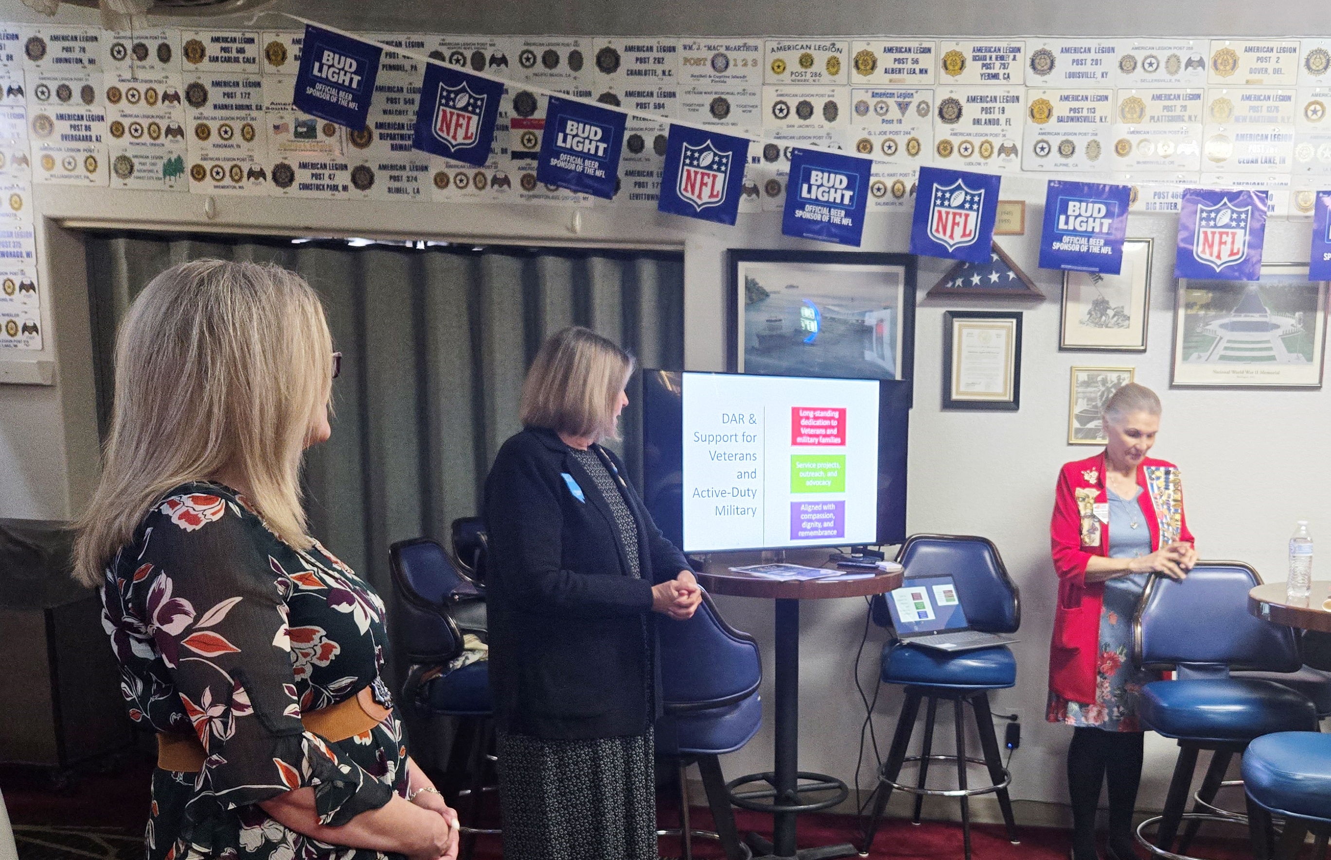 The first session of the year,” Let’s do Lunch” was a presentation of the Daughters of the American Revolution– the Meadows Chapter Las Vegas. After introductions by Neil Johnson and Denise Page a presentation was made by DAR Representatives. DAR member Stephanie Wheeler from the Fisher House, spoke about many opportunities to volunteer at the Fisher House near the VA Las Vegas. Sally Ann Kinley explained the history and eligibility requirements to join the DAR.