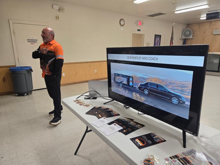 Dave Johnson, Veteran and owner of Last Mile Motorcycle Hearse Company which provides unique transportation the Fallen last ride to their final resting place. A variety of vehicles are available. Photos were shown of a Hummer Coach, Bentley Limousine and a Harley-Davidson Trike that are currently used. His services are available for the West Coast and all requests are considered and the majority of the time they are fulfilled to the highest standards. Lunch was provided, Lunch and Learn events are open to all interested veterans and families.
