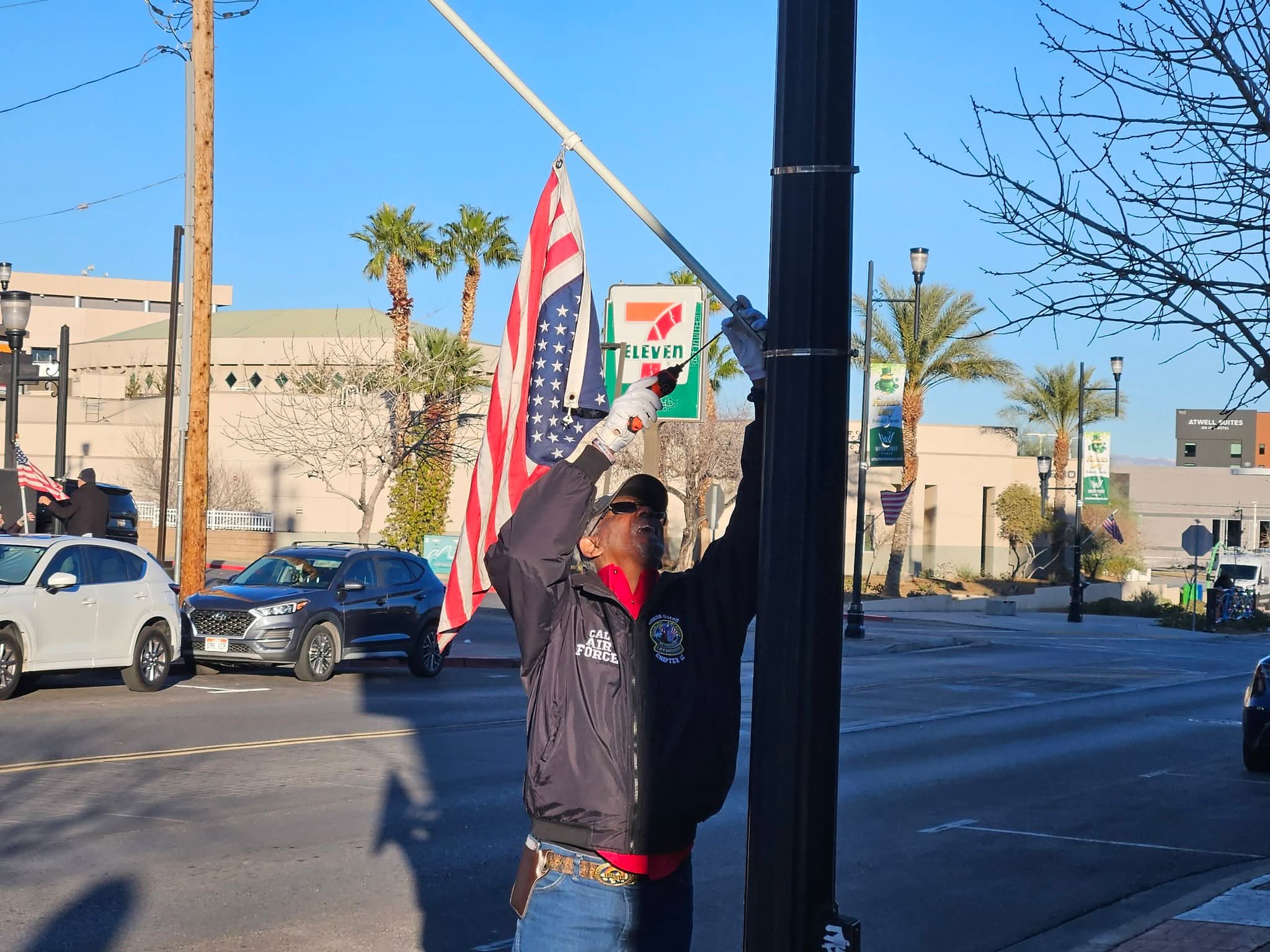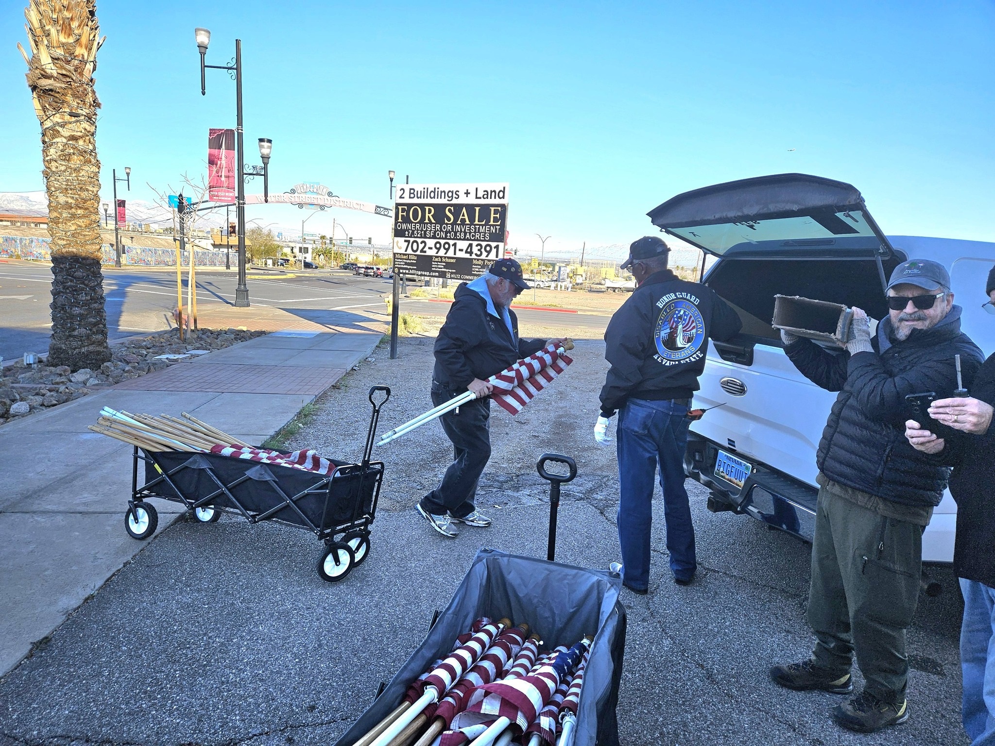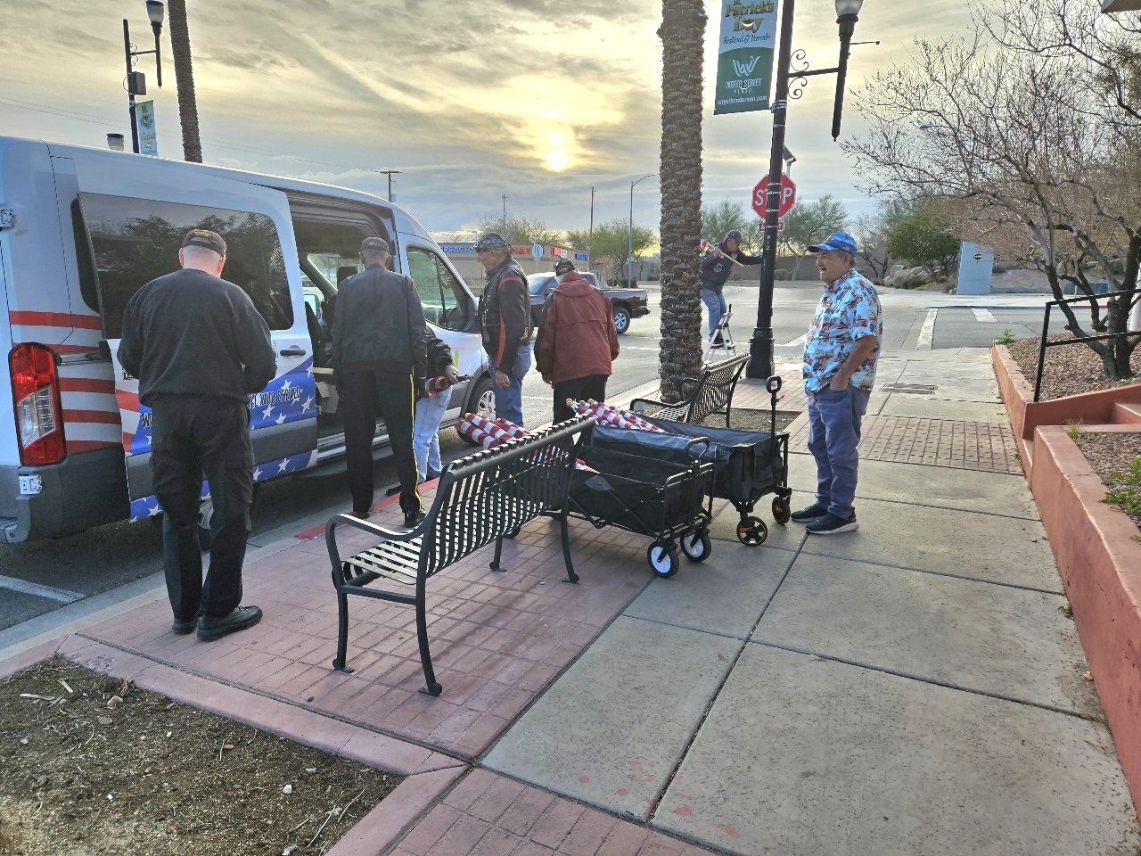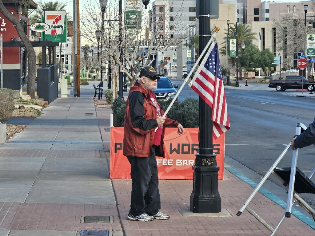 Getting ready for a busy week ahead with Marine Corps 250th Birthday and Veterans Day, VVA 1076 with DAV was putting up US Flags on Water Street at 0700 this morning. You can support many events like the VetFest– 8 NOV from 0900 to 1500 PM at Summerlin, The Downtown LV Veterans Day Parade 11 NOV at 1000, and Vet EXPO at The M Resort at 1000 to 1400. 15 NOV 1000 to 1330 The VA Medical Center is hosting a Barbecue and Car Show. Many businesses are offering free lunch or a dinner to Veterans.