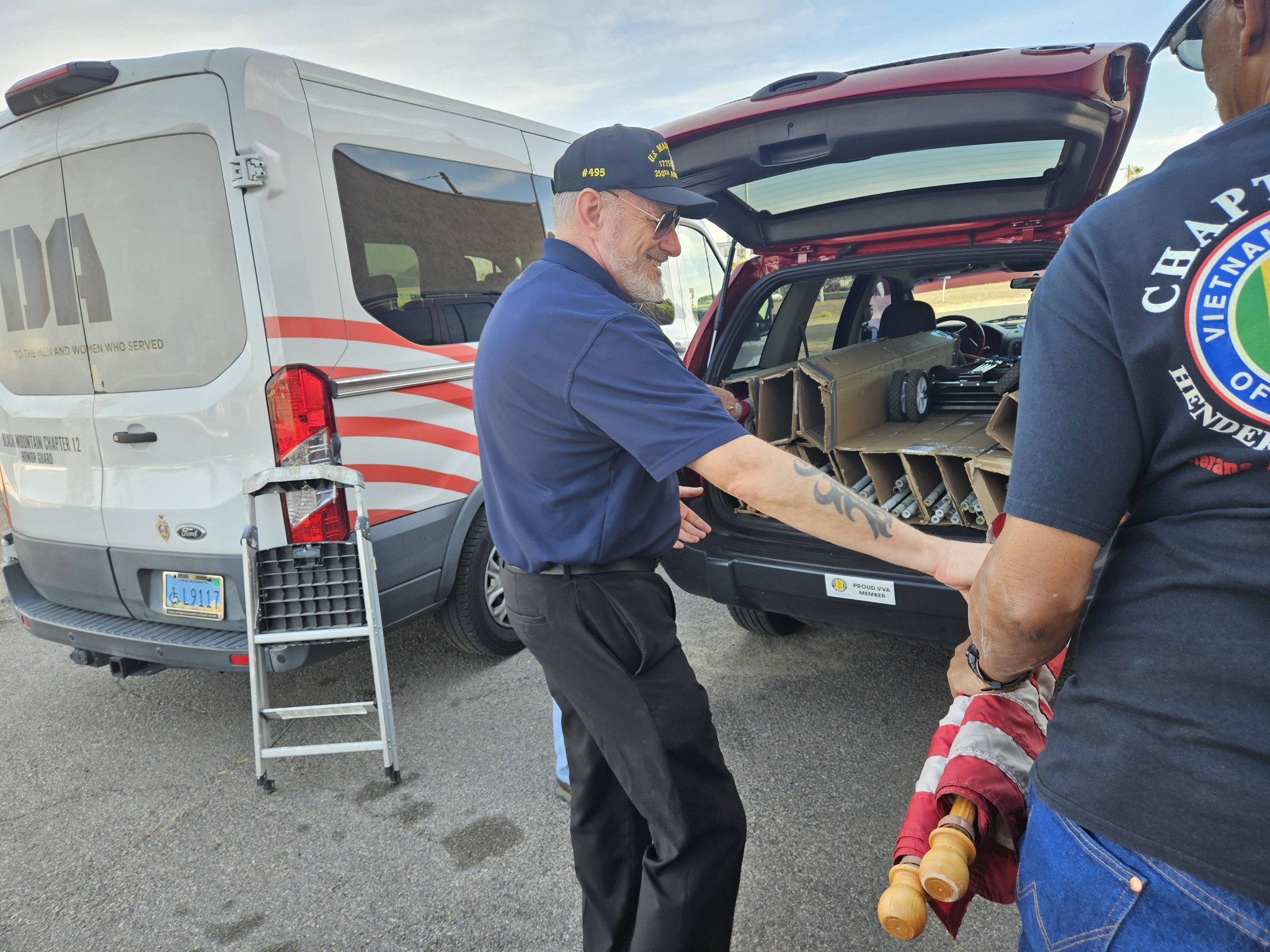 An Information/Membership Table was setup at the Smiths on Green Valley Pkwy, shoppers could Thank a VET during Vietnam Veterans Remembrance weekend. Mike and Fred were out early setting up the table and VVA 1076 Members Cal, Larry and Rick took turns answering questions throughout the day. Donors could “Ring the Bell”. Funds raised will help support veterans in the Las Vegas area. Mike was on duty from start to finish and helped pack Fred’s truck. Next event is scheduled in two weeks.