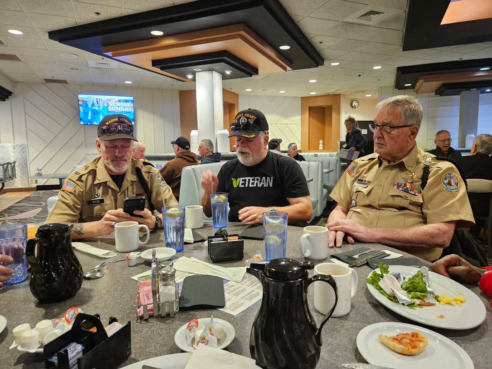 The gang retreated to Pass Casino for breakfast and camaraderie. Flags are scheduled to be removed Tuesday morning. Well Done !! VVA 1076