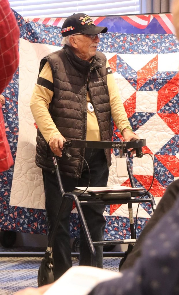 WW II Veteran EN2 Herb Cohen USCG with his Quilt.