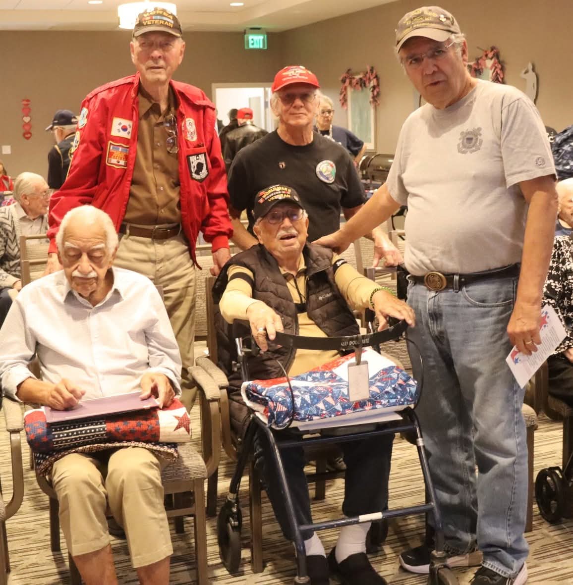Members of VVA 1076 were invited to participate in honoring 23 Veteran Residents of Legacy House of Southern Hills. The celebration is organized by Denise Page, 1Care Hospice and We Honor Vets group. Certificates as well as Quilts of Valor were presented to each honoree. The highlight was recognizing 2 World War II veterans who are over 100 years old. 105 Years young TSGT Bernard Farrar Air Force and EN2 Herb Cohen Coast Guard. EN2 Cohen serve on the Navy ship was assigned to a Boat crew of Landing Craft that transported troops to the beaches. It was truly an honor to meet them and all the recipients.