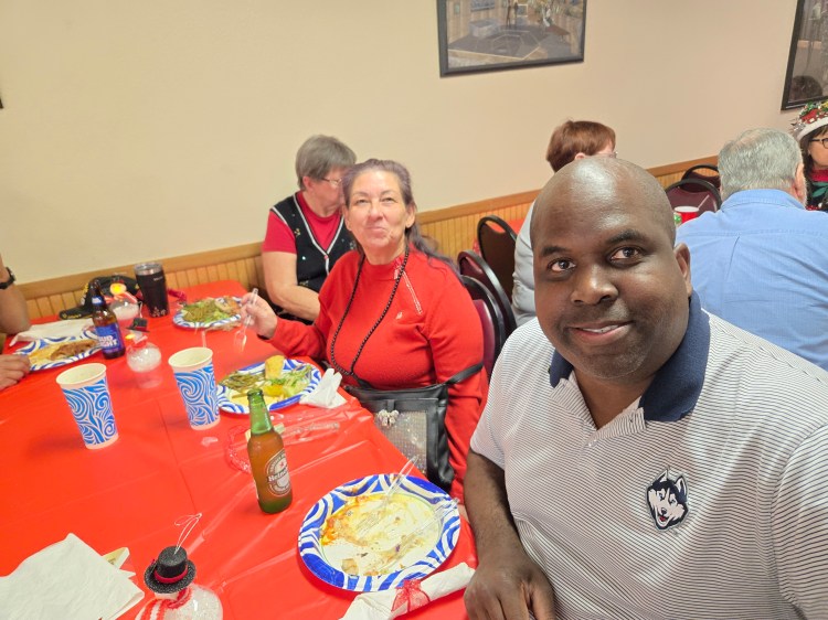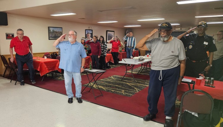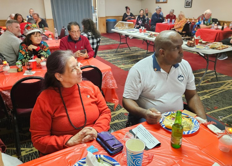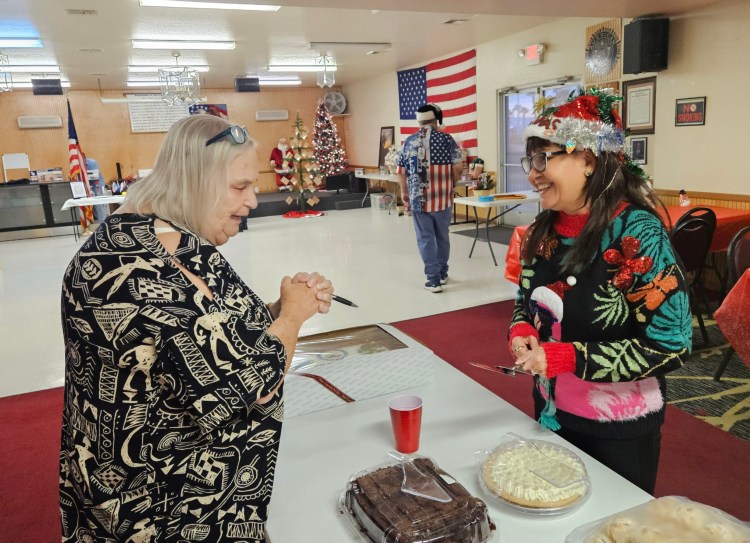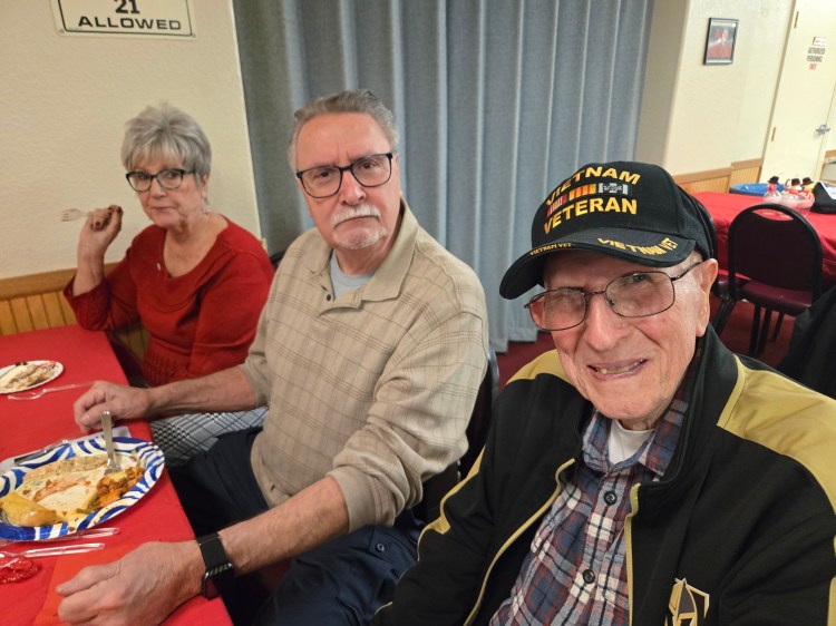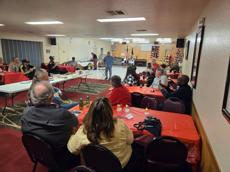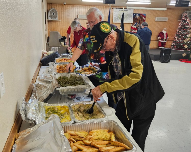This week’s Monday event, December 16th, at the American Legion Post 40, meeting hall, our Vietnam Veterans of America, Chapter 1076, 2024 Christmas Dinner. Catered by Johnny Mac’s, Boulder Highway and now Water Street, Henderson. An offer by one of our members to fund the catering cost made this possible. And two weeks of hard work by some amazing people finally set up this Dinner. Kathy Wiek, Rob Wiek, Penny Johnson, Neil Johnson, their daughter Melanie and son Dominique, Michael Berge and my wife, Sunshine Hall, who cooked a turkey last minute because we might not have enough food. It was the hit of the buffet!