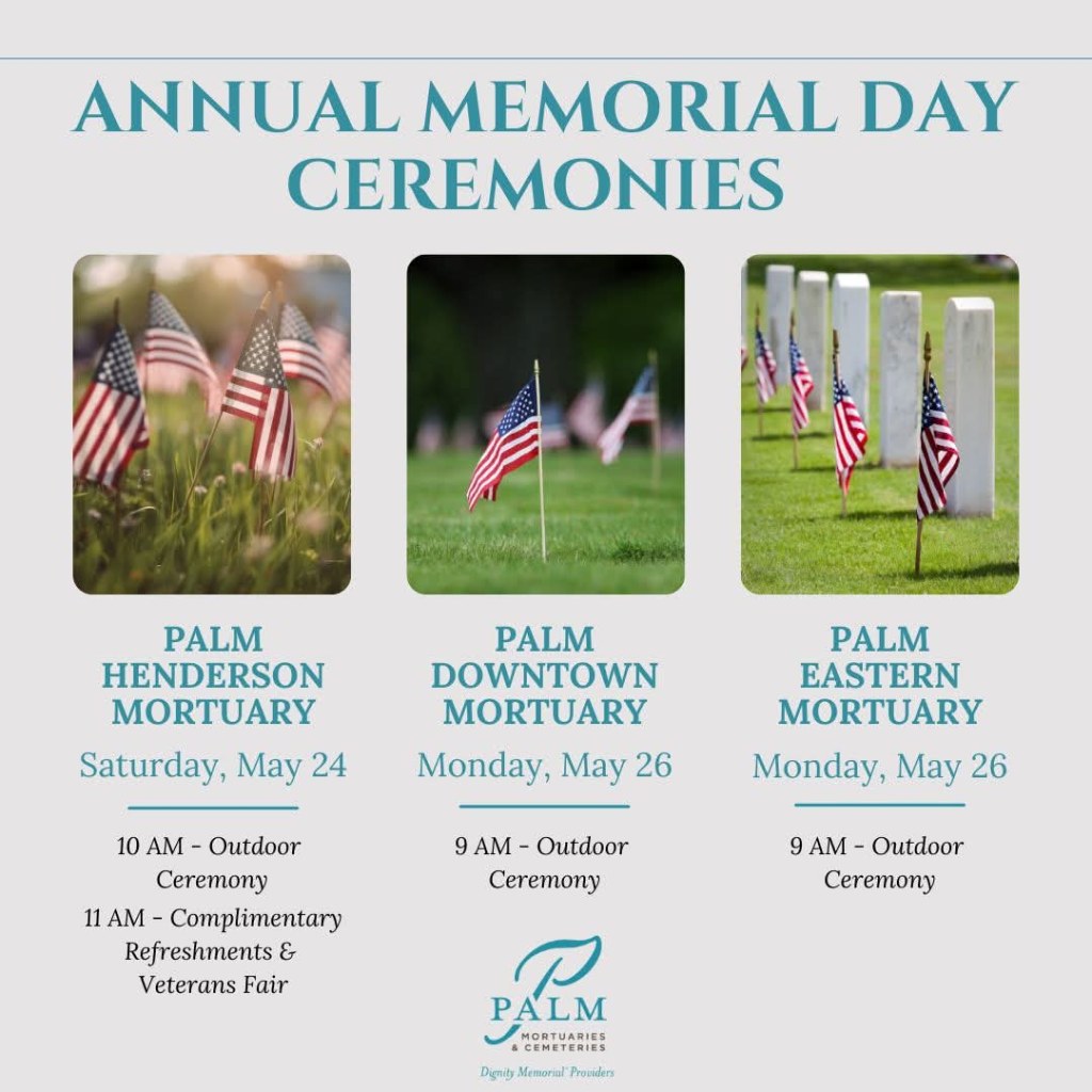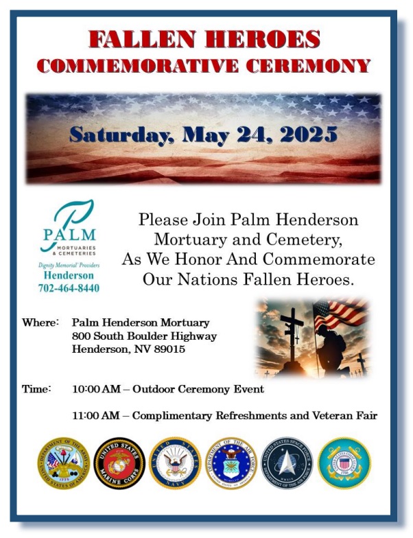 After the ceremony concluded, the staff of Palm Henderson Mortuary offered complimentary refreshments to everyone in attendance and welcomed all inside for a veterans fair that offered an array of veteran resources and the opportunity to meet other members within the veteran community, as well as other veteran-owned businesses in Henderson.