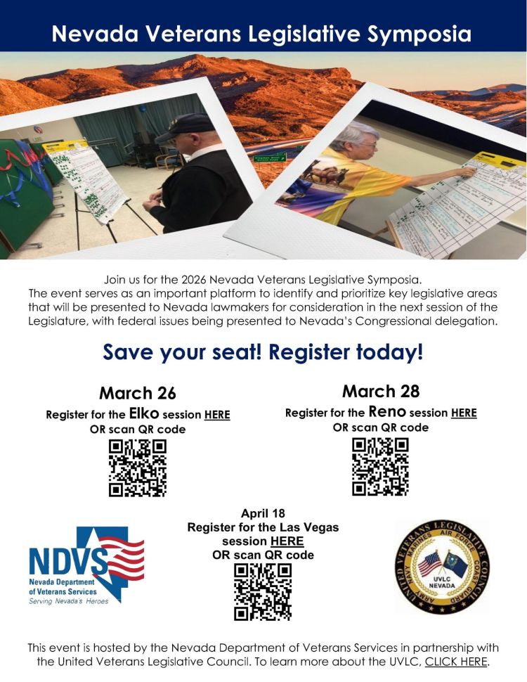 19 APR ( tba ) NDVS Nevada Veterans Legislative Symposia ( see flyer )