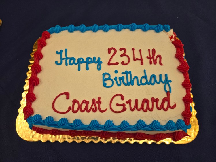 The Fleet Reserve Association Branch 90 hosted a cake party commemorating the 235 Birthday of the Coast Guard and Purple Heart Day
