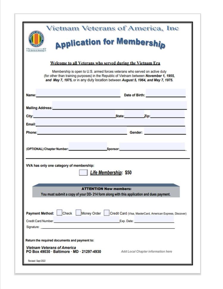 VVA applications can be found on line ( use Link ) at the National Headquarters site.